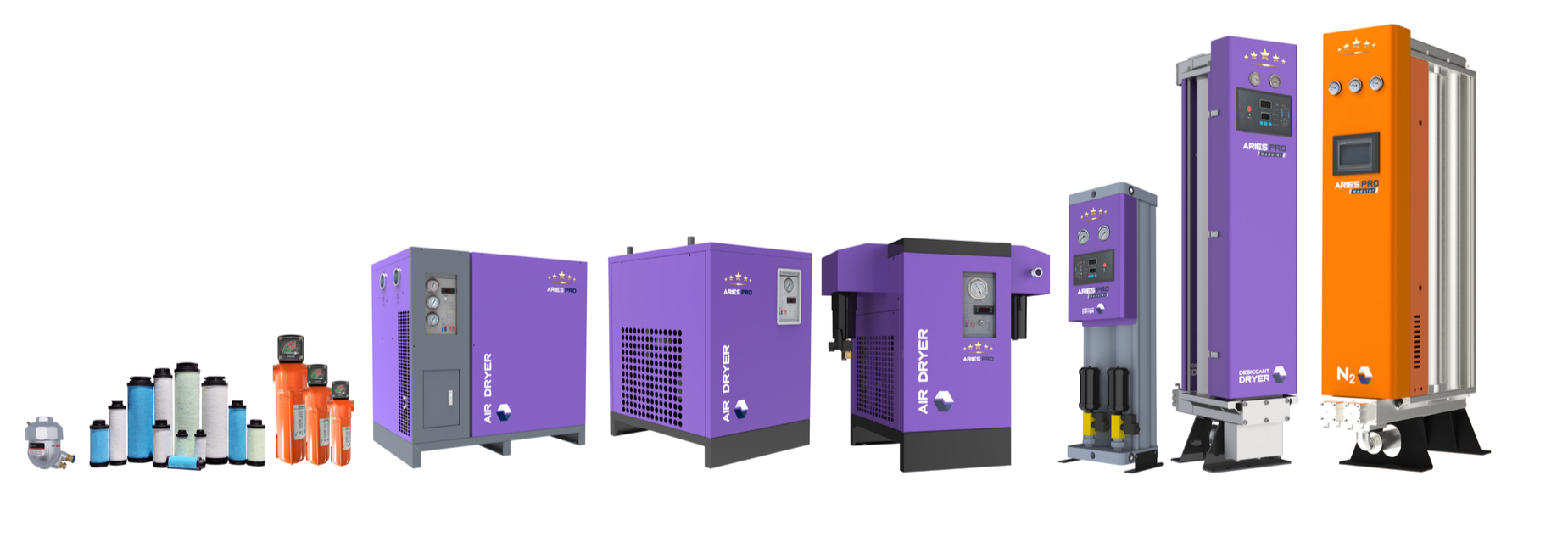 Our domestic manufacturing operates under the ARIESPRO brand - Dryers, Nitrogen gas generators, Filters, Valves etc.